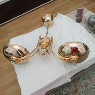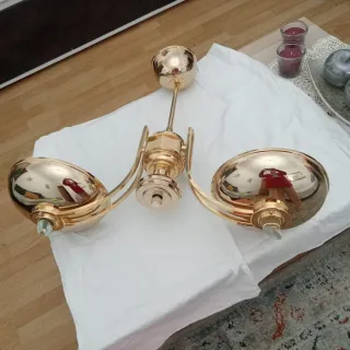 Elegante lámpara de techo con un acabado metálico brillante. - Diseño moderno y sofisticado. - Base y brazos en tono dorado. - Apta para bombillas de casquillo estándar.