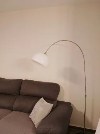 🛋️ Lámpara de pie arco con base de mármol, pantalla blanca y brazo cromado. Da muchísima luz y queda ideal para salón, estudio o rincón de lectura. Funciona perfectamente ✅ 📍 Recogida en Valencia capital zona Albors.