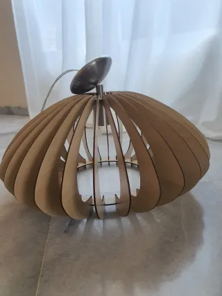 Lámpara colgante con un diseño único y llamativo. - Estructura de madera. - Pantalla de tela tejida.