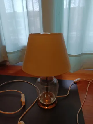 Elegante lámpara con detalles en metal dorado y pantalla de cristal. - Diseño clásico y sofisticado. - Combina acabados dorados y blancos. 2 unidades iguales iguales 50 euros cada unidad. 45 euros si compras las dos juntas.
