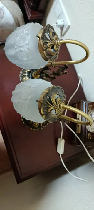 Lámparas colgantes y apliques con un diseño clásico y detalles vintage. Se venden por separado o juntas. También hay apliques adicionales que no salen en las fotos. 5 eur por lámpara.