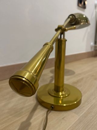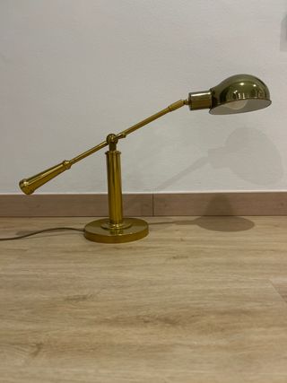 Artículo de mucha calidad. Elegante lámpara de escritorio con un diseño clásico y funcional. Perfecta para iluminar tu espacio de trabajo o estudio. - Acabado metálico brillante. - Brazo articulado para ajustar la luz. - Base estable y robusta. Precio original 395€