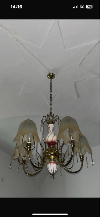 Lámpara de techo antigua, con todas sus piezas y funciona perfectamente Precio negociable