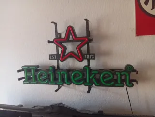 Lámpara decorativa con el logo de Heineken y su icónica estrella. - Diseño con estrella roja y contorno negro. - Texto EST. 1873 y Heineken en verde. Está en perfectas condiciones PRECIO NO NEGOCIABLE..