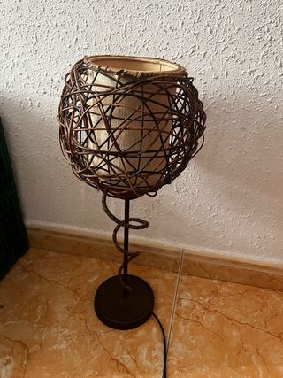 Lámpara de mesa de mimbre y metal