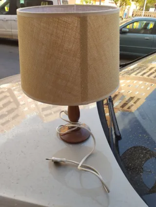 Lámpara de mesita tela y madera