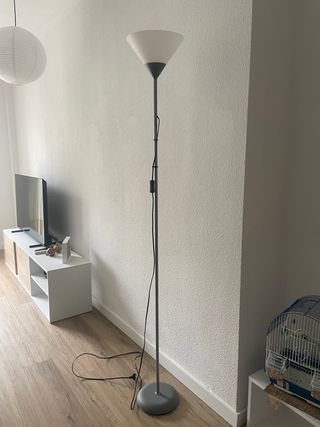 Lámpara de pie gris y blanca