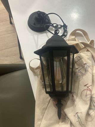 Elegante lámpara de techo para exteriores con un diseño clásico. - Acabado en color negro. - Detalles en cristal. Preferible en envío Precio nada negociable Me lo regaló un amigo, pero no tengo donde ponerlo por eso está en venta más info por privado También hago venta en mano, pero prefiero envío