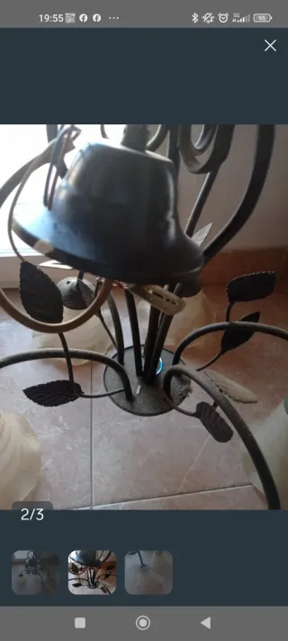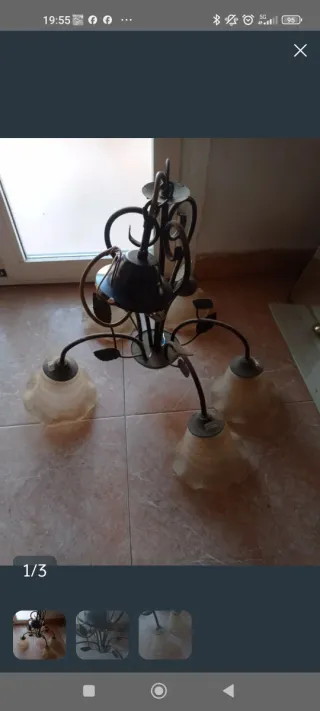 Lampara para dormitorio de forja con tres focos en buen estado d
