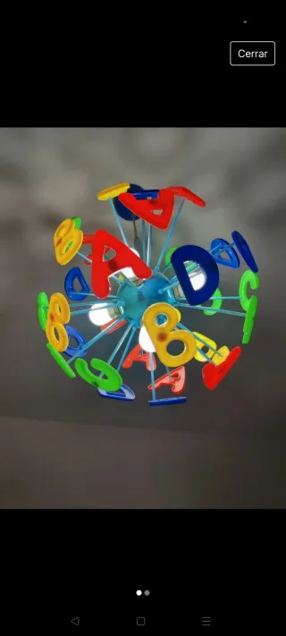 Original lámpara colgante con un diseño divertido y educativo, perfecta para habitaciones infantiles. Las letras de colores le dan un toque alegre y estimulante. - Estructura con varillas azules. - Decorada con letras de plástico de varios colores.