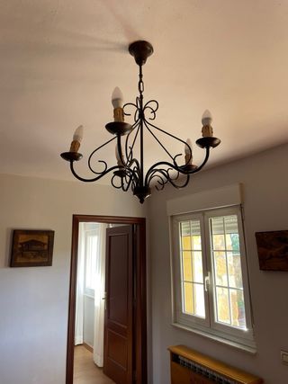 Elegante lámpara de techo con un diseño de forja. - Acabado en tonos negros y marrones. - Fabricada en metal.