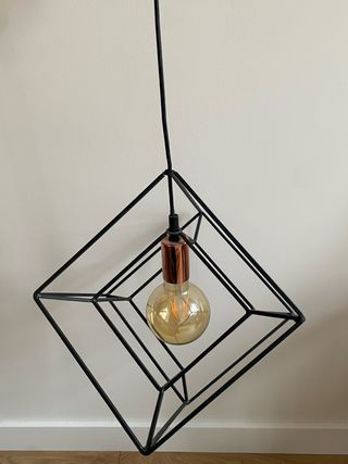 Lámpara colgante con un diseño moderno y geométrico, ideal para dar un toque industrial a tu hogar. - Estructura metálica. - Casquillo de cobre.