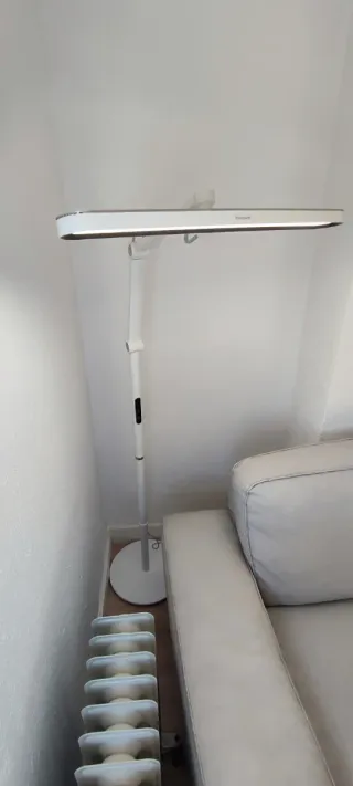 Lámpara LED de diseño moderno, casi sin uso. Ideal para cualquier espacio. - Altura y ángulo ajustables. - Base redonda estable. - Acabado liso y elegante.