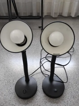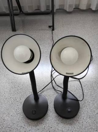 Se venden dos lámparas de mesa con bombillas de bajo consumo incluidas de larga duración con un diseño moderno y funcional. Perfectas para cualquier espacio. - Base redonda. - Cuello flexible. - Bombilla incluida.