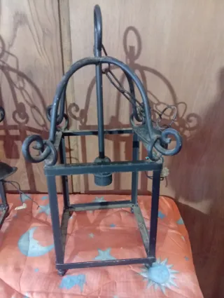Tres lámparas de hierro forjado, perfectas para dar un toque rústico a tu jardín o terraza. - Diseño de estilo rústico. - Estructura de metal resistente. El precio es de las 3 lámparas Tengo tres