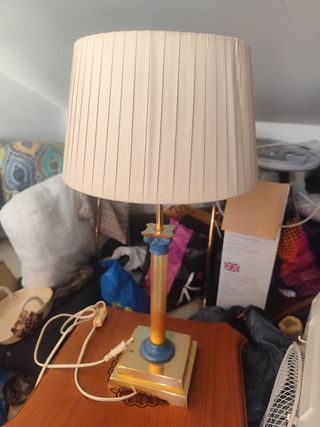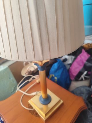 Lámparas mesita noche pie acero y pantalla textil, portalamparas rosca miñón E-14 puede usar bombillas led, medias: 40x14cm. Envios por Wallapop (correos) o recogida en mano en Murcia Capital.