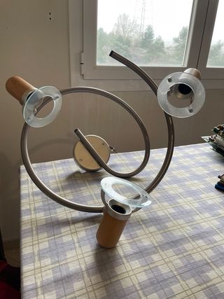 Elegante lámpara de diseño con acabado en acero, ideal para tu espacio de trabajo o estudio. Su estilo moderno complementará cualquier decoración. NO HAGO ENVÍOS. ENTREGA EN MANO NO ES UN MODELO ORIGINAL DE LÁMPARA DE FIRMA DE DISEÑADOR QUE CUESTA MILES DE EUROS. ES UN MODELO REPLICA SIMILAR - Fabricada en acero - Color plateado