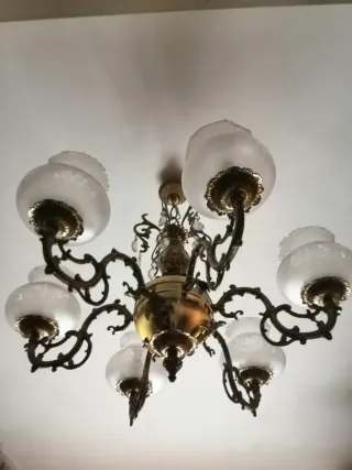 Lámpara araña salón antigua metal dorado