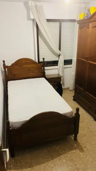 Cama individual de estilo vintage, con un diseño clásico y elegante. - Fabricada en madera maciza. - Cabecero y piecero con detalles tallados. - Estructura robusta y duradera. Se vende pack de armario vintage+cama+mesita de noche vintage por 590€