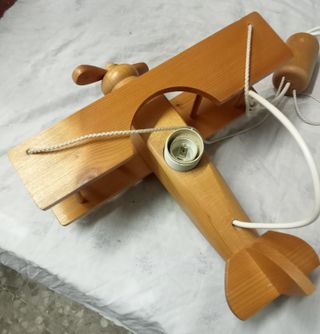 Se vende lámpara colgante con diseño de avión. Es de madera. Ideal para habitaciones infantiles o como elemento decorativo.