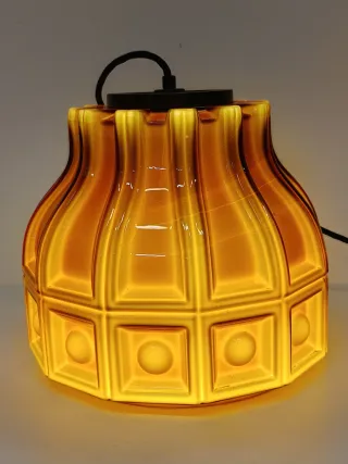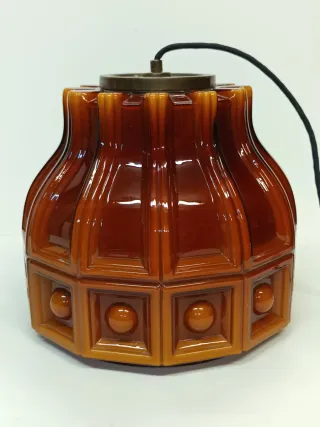 Lámpara colgante de diseño vintage, flygspors años 60 - Fabricada en vidrio. - Tonos ámbar y marrón. - Diseño con relieve. B1