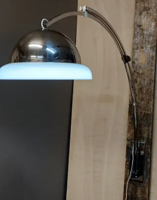 Lámpara aplique de pared tipo arco, space age años 60/70, gran tamaño, diseñada por Goffredo Reggiani y fabricada por Reggiani, medidas en fotografía.