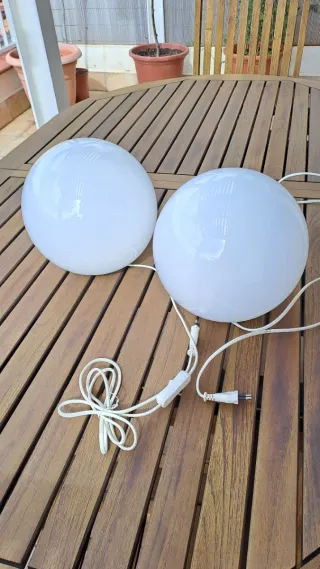 Par de lámparas de mesa con diseño esférico. - Diseño moderno y minimalista. - Difusor de luz suave. Incluye gratis las 2 bombillas