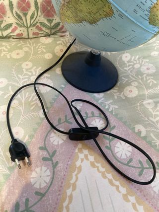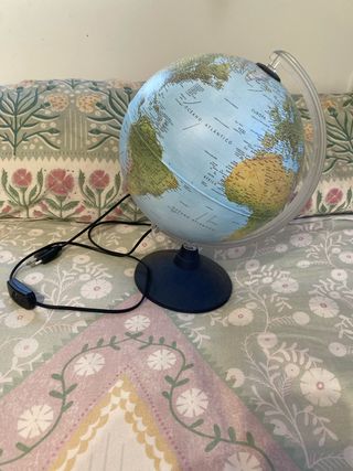 Globo terráqueo con base y soporte para iluminar. - Globo terráqueo con mapa político. - Base de plástico negro. - Soporte de plástico transparente.