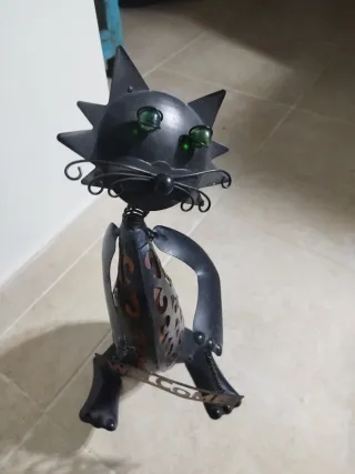 Original adorno de gato negro hecho de metal, perfecto para dar la bienvenida. 43 cm de altura - Diseño con detalles calados. - Ojos verdes. - Incluye cartel WELCOME con cadena.
