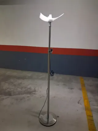 Lámpara de pie con un diseño moderno y elegante, ideal para cualquier espacio. - Estructura principal en metal plateado. - Base y detalles en cristal. Buen estado. El precio es de cada una. Si te llevas las dos, se bajaría algo