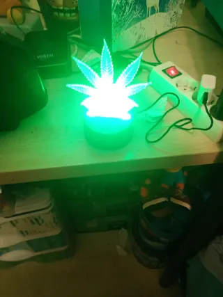 Lámpara decorativa con diseño de hoja. - Base redonda. - Iluminación LED. Se puede enchufar o a pilas ilumina bastante la vendo porque no la uso