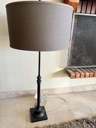 Lámpara de pie con un diseño moderno y elegante. - Pantalla de tela. - Base madera pie de madera Tengo dos lámparas