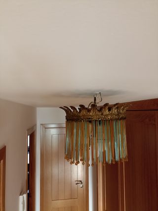 Lámpara de techo dorada y verde