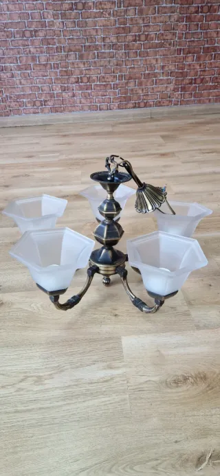 lámpara de araña de bronce macizo con un diseño clásico atemporal, ideal para dar un toque de distinción y elegancia a cualquier salón o comedor. Esta joya vintage es probablemente de las décadas de los 60 o 70. Características Principales Material: Bronce macizo de alta calidad. Diseño: Estilo clásico con 6 brazos curvados, cada uno diseñado para bombillas tipo vela. Estado: Se encuentra en un estado excelente de conservación, manteniendo su pátina original que le confiere ese encanto auténtico y vintage.