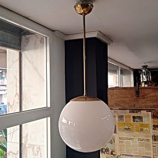 Lámpara bola grande , antigua de estilo industrial, medidas: 28cm x 28 cm de diámetro. Recogida en tienda en Gandía. También disponemos de recambio, venta aparte.