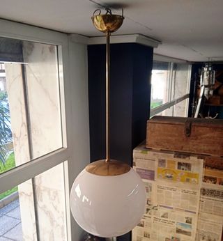 Lámpara colgante bola dorada y blanca
