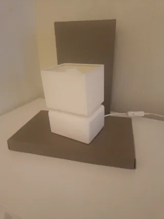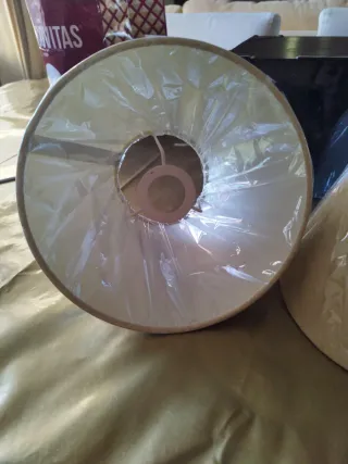 Preciosa lámpara de mesa, ideal para crear un ambiente cálido y acogedor en cualquier espacio. Es de color beige y tiene un diseño elegante y sencillo. - Perfecta para mesitas de noche o escritorios. - Estructura de metal en negro y pantalla de papel resistente. - Diseño de estilo natural. - Longitud del cable: 2.2 m - Diámetro de la lámpara: 13 cm - Altura de la lámpara: 26 cm - Máx.: 8.6 W - Incluye bombilla ¿Te gusta? Escríbeme :) Puedes solicitarme el envío por Wallapop, ¡es fácil, rápido y seguro!