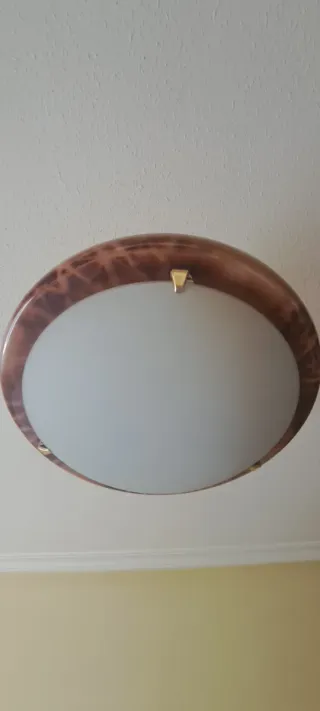 Elegante lámpara de techo con un diseño moderno. Acabado en tonos madera y detalles dorados. - Pantalla de cristal translúcido. Varios modelos 16 € unidad