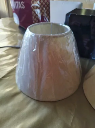 Dos pantallas de lámpara con un diseño elegante.10*20*15cms - Color beige y transparente. - Materiales de tela y plástico.