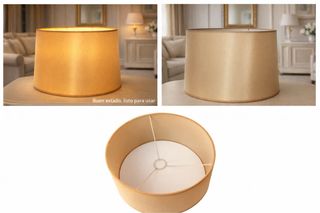Pantalla de lámpara con un acabado textil elegante. - Color beige y dorado. - Material de tela.