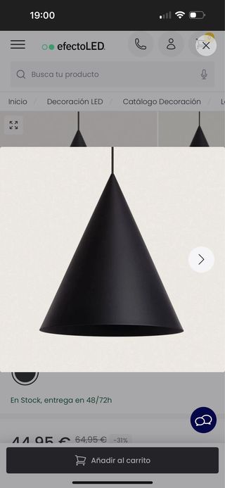 Lámpara colgante tipo cono aluminio negro x 2 u