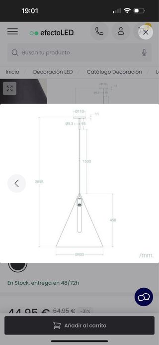 Lámpara de techo colgante con un diseño moderno y elegante. Su acabado la hace versátil para cualquier espacio. - Forma cónica. - Cable de alimentación incluido.