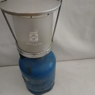 Lámpara Campingaz azul y transparente
