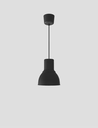 Lámpara colgante HEKTAR de IKEA en color gris muy oscuro. Su diseño es moderno y versátil. - Diámetro de 22 cm. - Fabricada en metal.