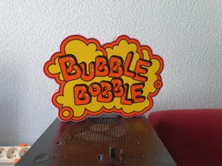 Lámpara decorativa con el diseño del clásico videojuego Bubble Bobble. Ideal para coleccionistas y amantes de los videojuegos retro. - Diseño llamativo con los personajes. - Contorno en color rosa.