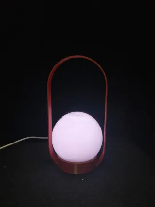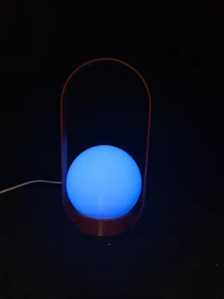 Lampara de estilo moderno. Impresa en filamento. Mide 23 cm de alto x 12 cm de ancho. Incluye control remoto para cambiar el color de la luz. La batería es recargable. Se carga con cable tipo C