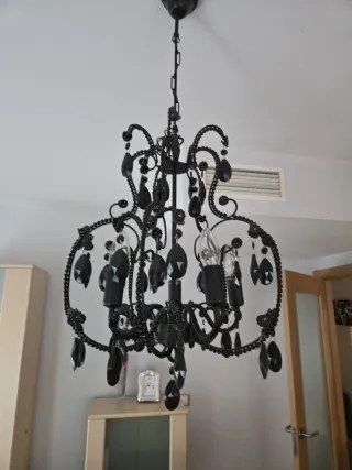 Elegante lámpara de araña con un diseño intrincado. - Detalles en cristal. - Estructura metálica. - Color negro.
