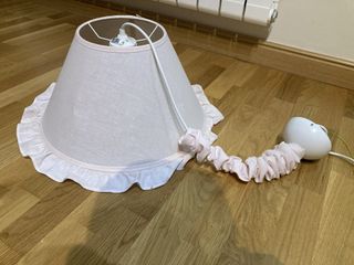 Bonita lámpara de techo con un diseño delicado y elegante. - Pantalla de tela con acabado en volantes. - Cable textil.