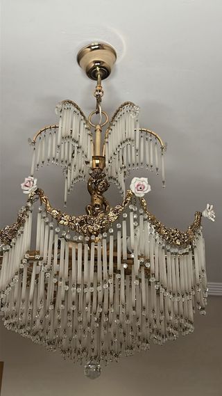 Lámpara de techo dorada con detalles de porcelana