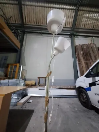 Lámpara de pie con un diseño moderno y elegante. Perfecta para iluminar cualquier rincón de tu hogar. Dos lámparas - Estructura principal de metal. - Pantallas de plástico blanco. - Altura ajustable.